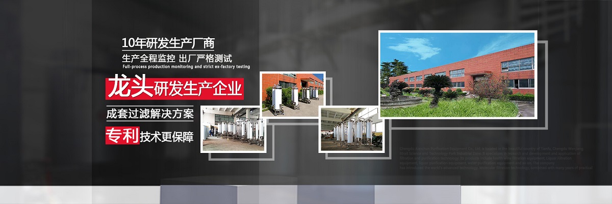 成都愛(ài)爾純凈化設(shè)備有限公司,坐落于美麗的天府之國(guó),成都市溫江區(qū)海峽科技園工業(yè)區(qū),專業(yè)從事于過(guò)濾、凈化技術(shù)的研發(fā)應(yīng)用,產(chǎn)品有保健酒過(guò)濾設(shè)備、白酒過(guò)濾設(shè)備、白酒凈化設(shè)備、水凈化設(shè)備等,公司引進(jìn)世界先進(jìn)過(guò)濾分子技術(shù),結(jié)合專業(yè)技術(shù)人員資深多年實(shí)踐經(jīng)驗(yàn),解決酒類、飲水類后期處理難題。 業(yè)務(wù)涵蓋,酒類過(guò)濾:除混濁沉淀,澄清處理、除苦味,異雜味,新酒催熟陳化處理 、除塑化劑、固形物、雜醇油、甲醇及各類含量超標(biāo)后期處理。 水類:軟水、純凈水、礦泉水、飲料等凈化處理。用心為客戶提高生產(chǎn)效率、提高產(chǎn)品質(zhì)量、降低生產(chǎn)成本、環(huán)保減排而開(kāi)發(fā)創(chuàng)新,堅(jiān)持奮斗。 公司至誠(chéng)每一位客戶,“誠(chéng)信服務(wù),客戶至上”為宗旨,為客戶要求,用心凈化每一點(diǎn)滴,我們都將以精準(zhǔn)的數(shù)據(jù)化設(shè)計(jì)、嚴(yán)格的設(shè)備制作質(zhì)量把關(guān)、快捷專業(yè)的安裝調(diào)試以及周到的售后服務(wù),解決客戶生產(chǎn)過(guò)程中遇見(jiàn)的各種酒、水后期處理的技術(shù)難題。